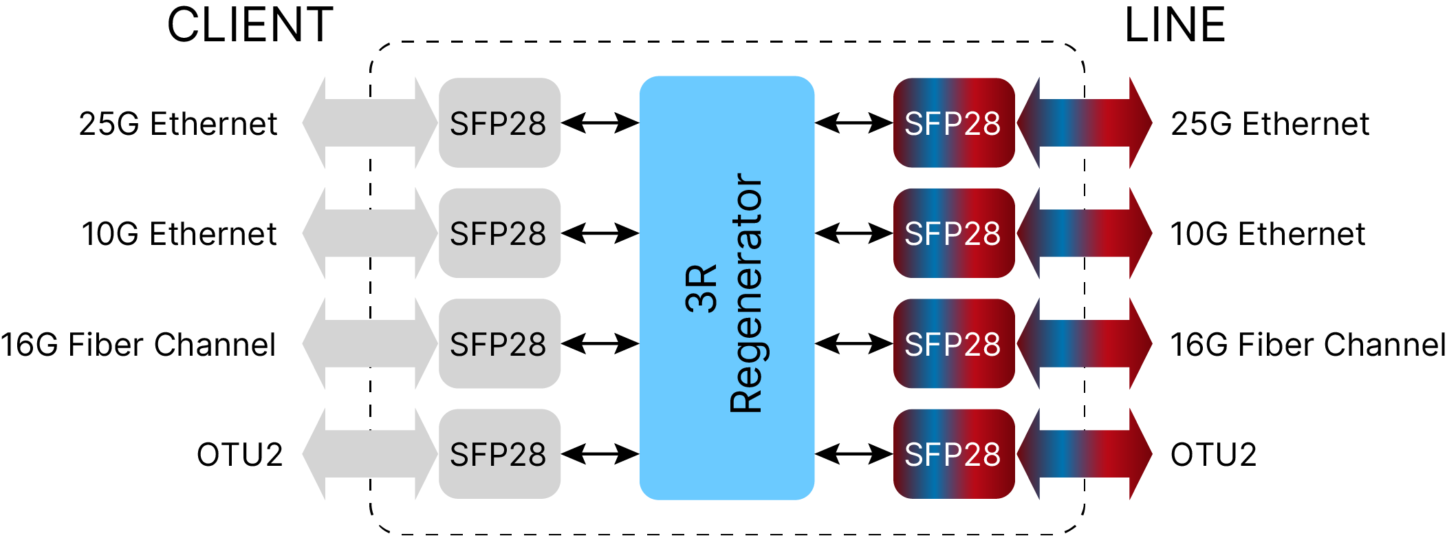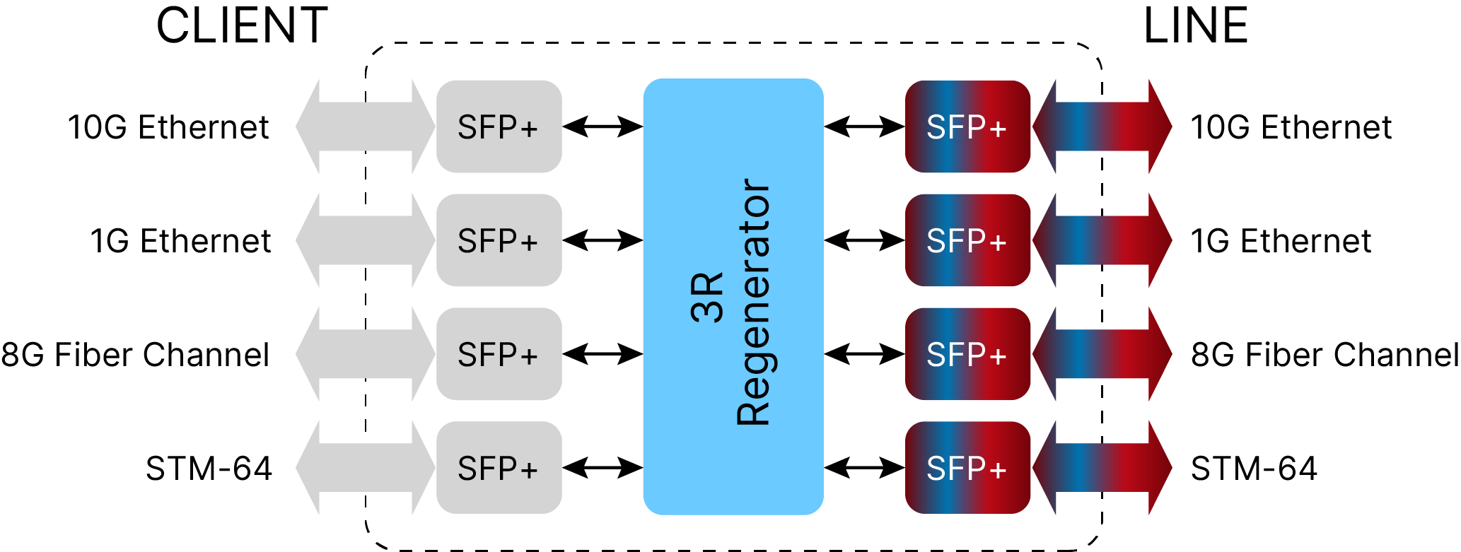 Regeneracja 3R sygnału umożliwia regenerację OEO (Optical-Electrical-Optical), co poprawia jakość i stabilność transmisji, szczególnie na dłuższych dystansach.