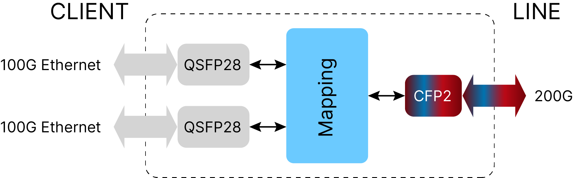 Transponder GPTN-200G-1CH to 1-kanałowa karta transpondera dla przepływności 100Gbit/s. Porty QSFP28 wspierają moduły LR4 oraz SR4, a porty CFP2 transmisję koherentną. Urządzenie zapewnia elastyczną transmisję protokołu: