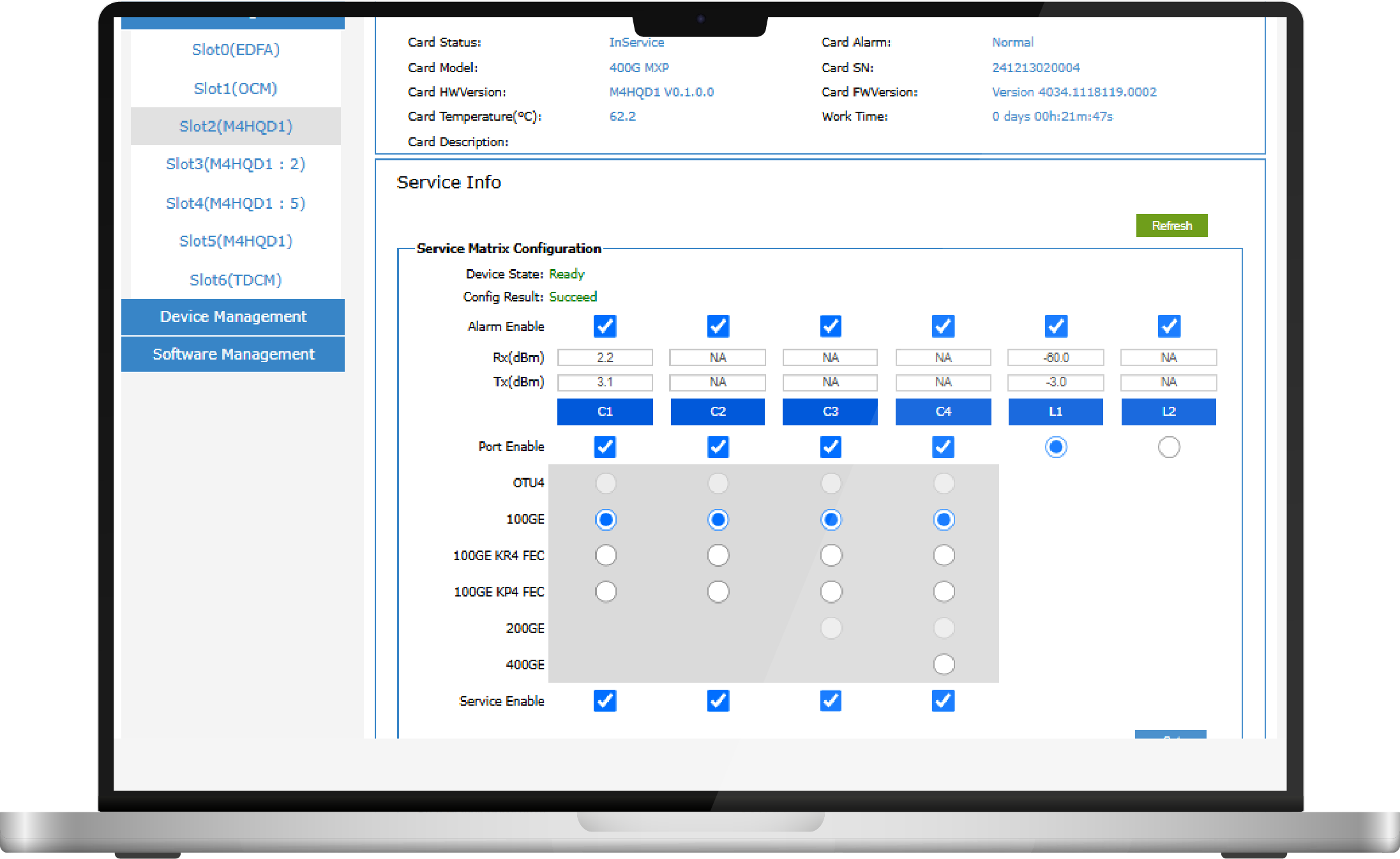 GBC Photonics S100 oferuje pełną kontrolę nad siecią przez przeglądarkę internetową (HTTPS) i interfejs WEB GUI.